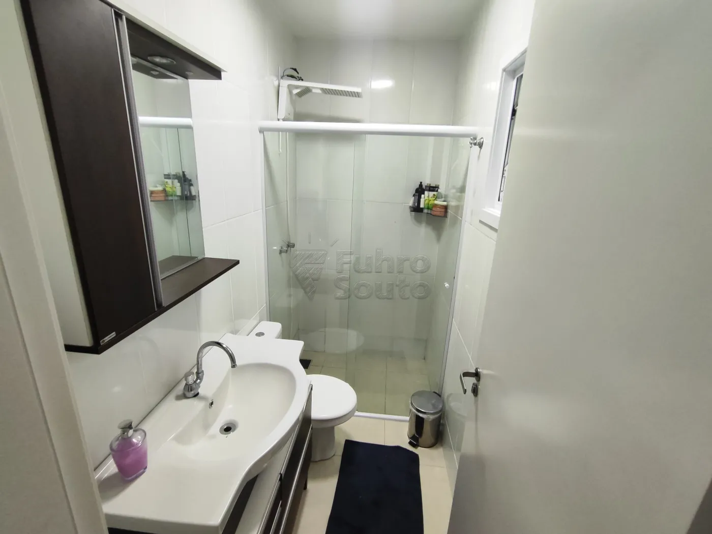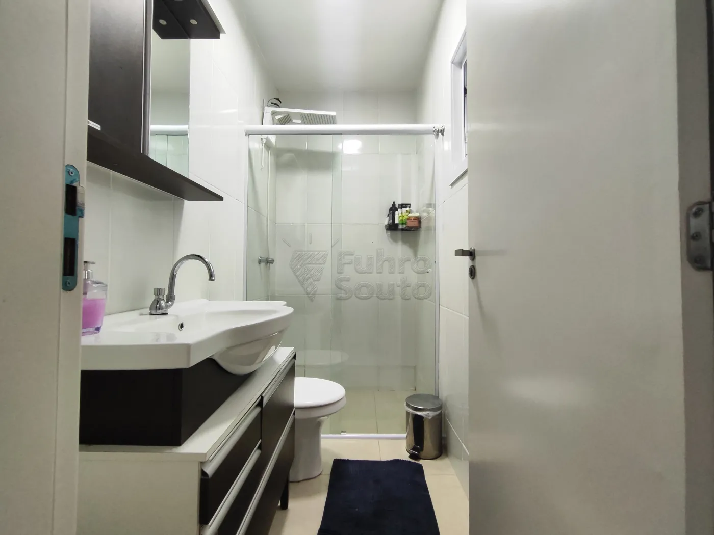 Banheiro com box de vidro, trazendo praticidade e elegância