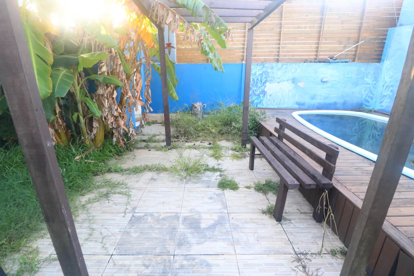 - Lazer Externo: Área de lazer com pergolado, piscina e deck de madeira, ideal para relaxar e se divertir nos dias de sol.