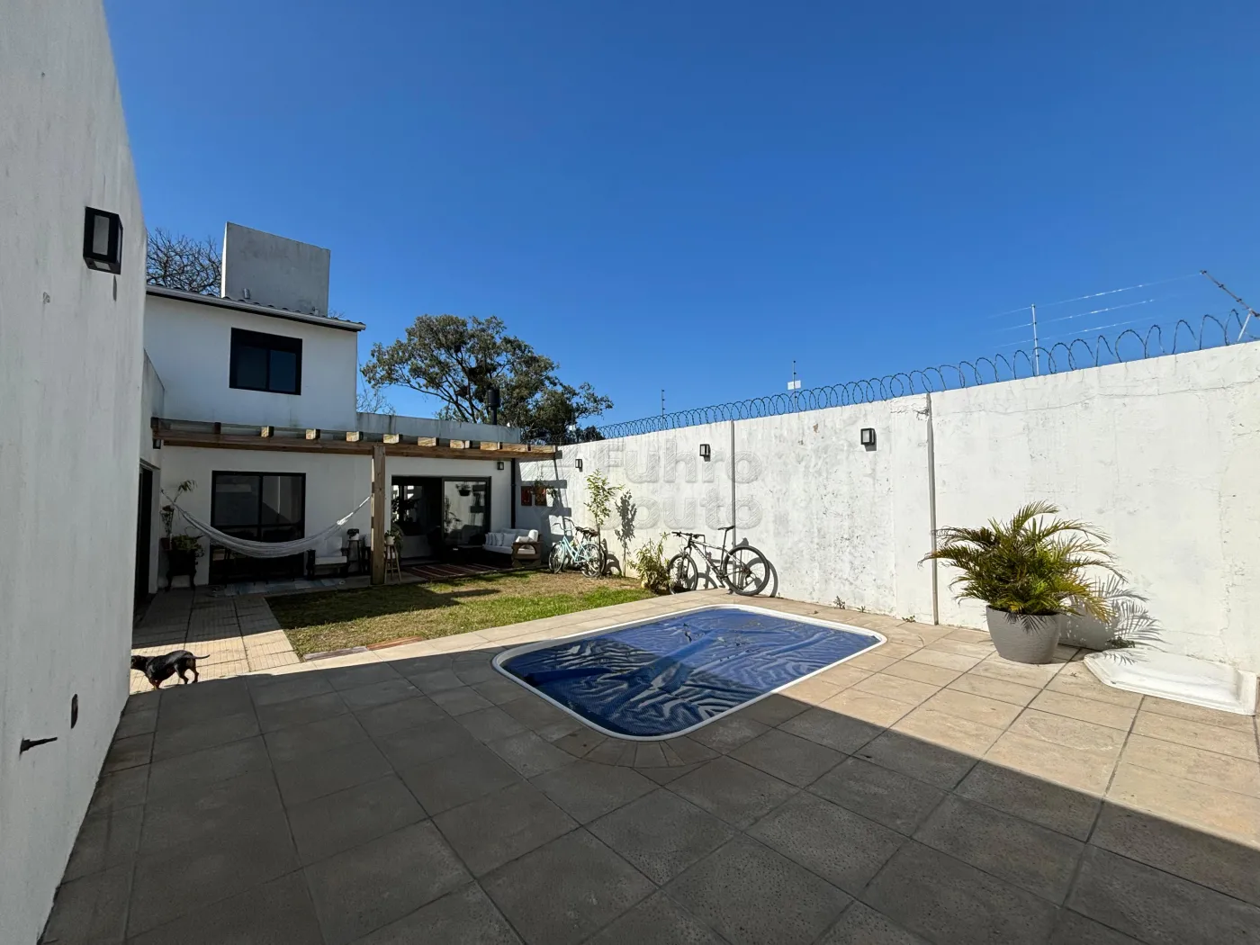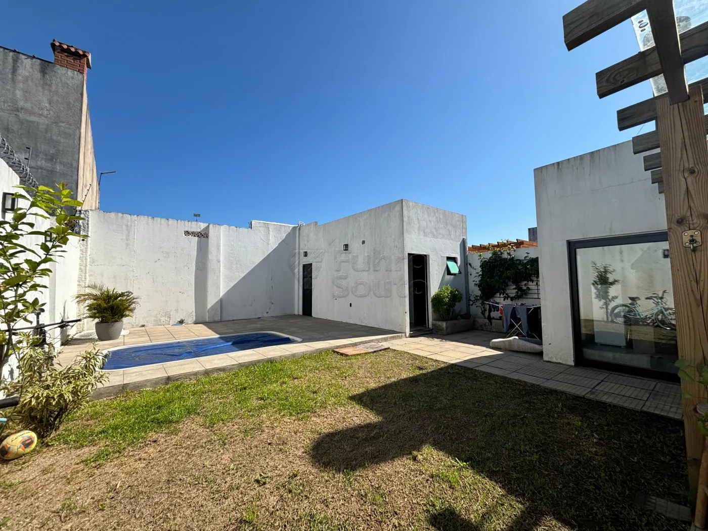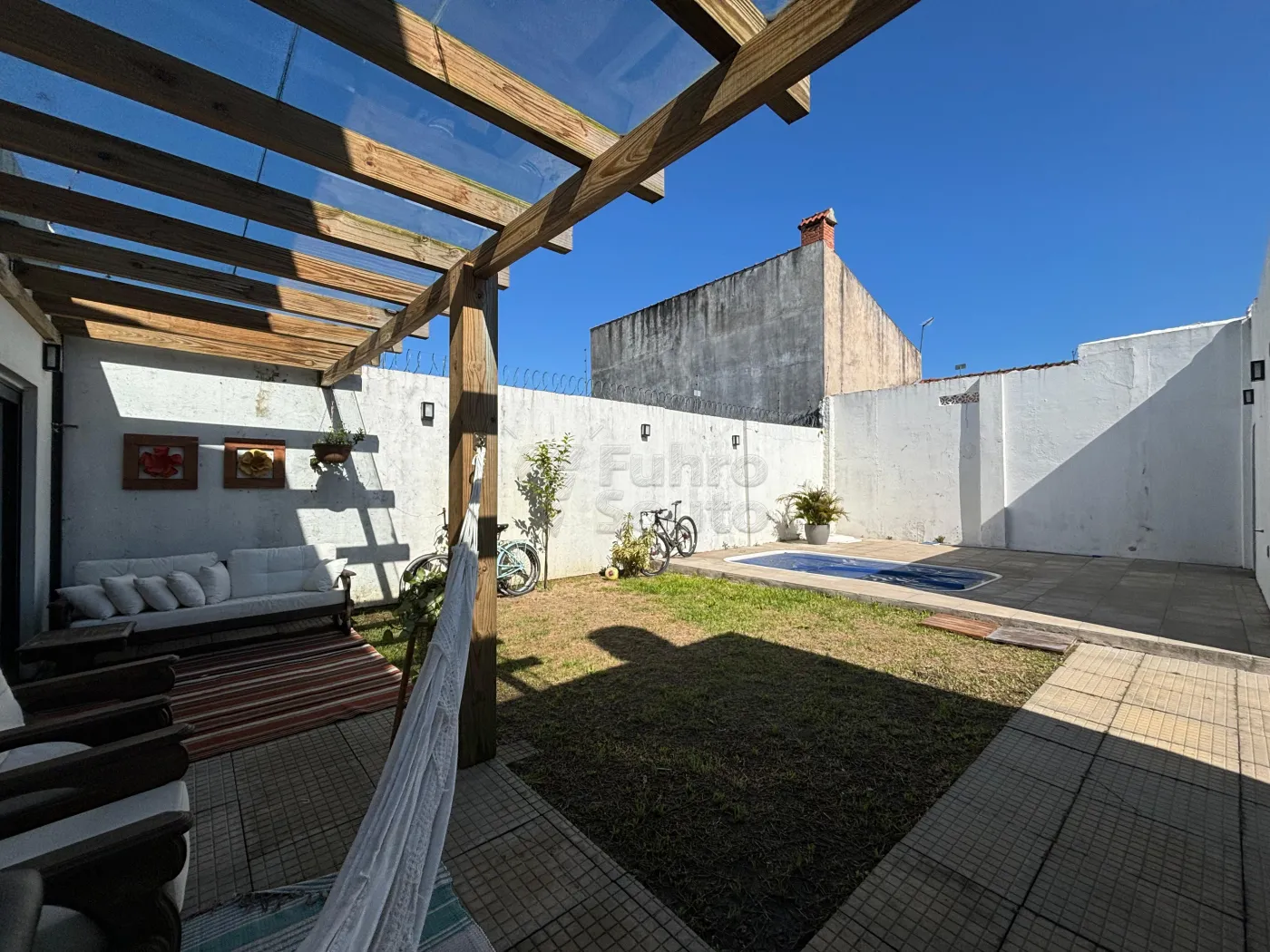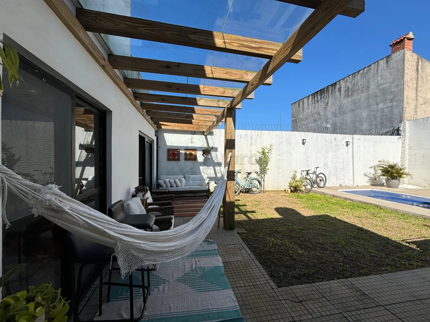 Nos fundos, uma piscina para relaxar e aproveitar os dias ensolarados.