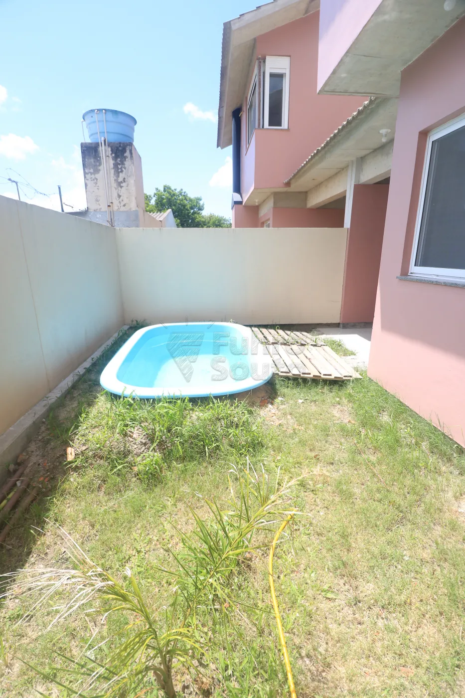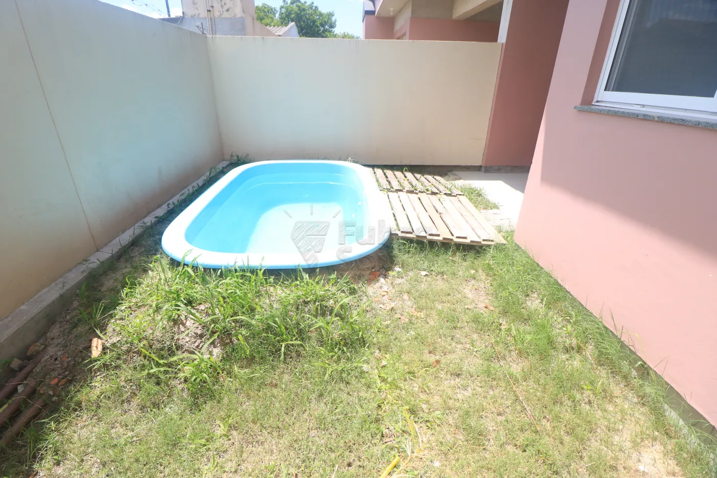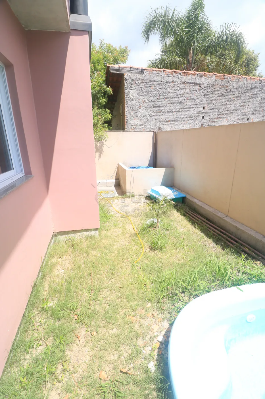 Pátio amplo, murado e com grades.