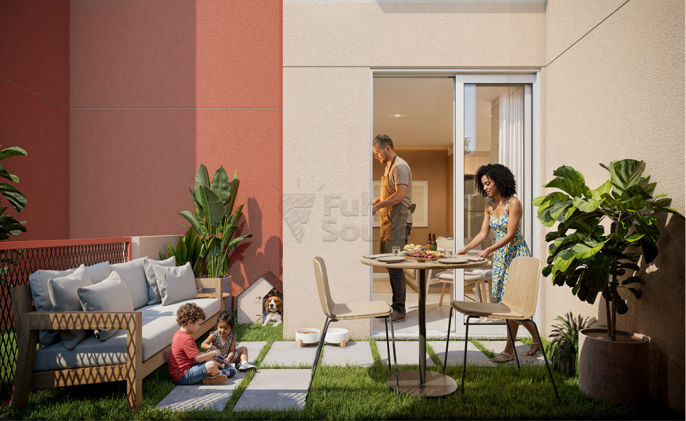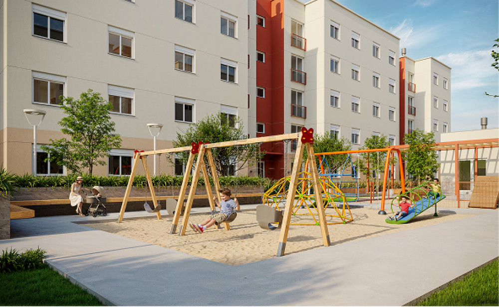 São apartamentos de dois dormitórios, com sala estendida e churrasqueira interna, além da possibilidade de unidades garden. O condomínio conta com salão de festas multiuso, quadra poliesportiva, quadra de beach tennis, espaço pet, playground e quiosques com churrasqueira, tudo entregue 100% mobiliado, com acabamentos diferenciados.